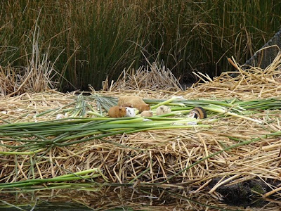 Here is a picture from the floating Uros islands yesterday in Lake Titicaca. They had a small guniea pig ranch...by the way tonight is the GP dinning experience.